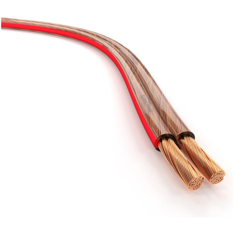 2x 2.50 mm²: Met een dikte van 2,50 mm² per ader biedt deze kabel een optimale balans tussen flexibiliteit en kracht. Ideaal voor de meeste hifi- en home cinema-systemen.