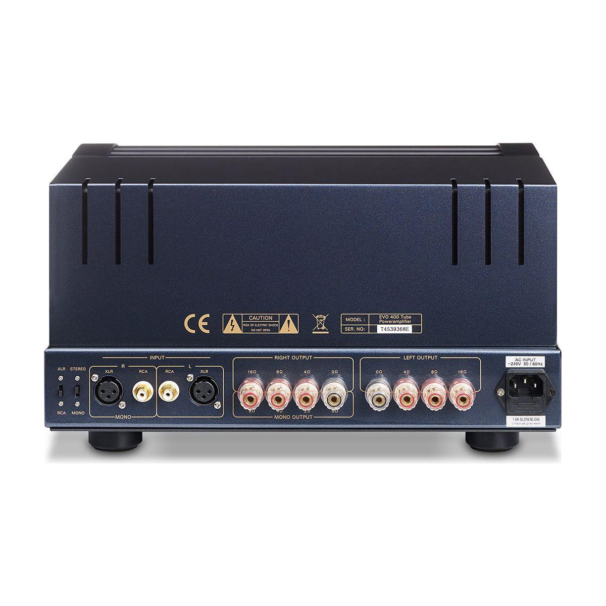 Met vier KT88 eindbuizen per kanaal levert de EVO 400 2 × 70 watt in ultralineaire modus of 2 × 38 watt in triode modus. Dankzij de gescheiden dual-mono voeding, tube rectificatie én de mogelijkheid tot gebalanceerde (XLR) aansluiting, is deze versterker zowel technisch geavanceerd als muzikaal meeslepend.
